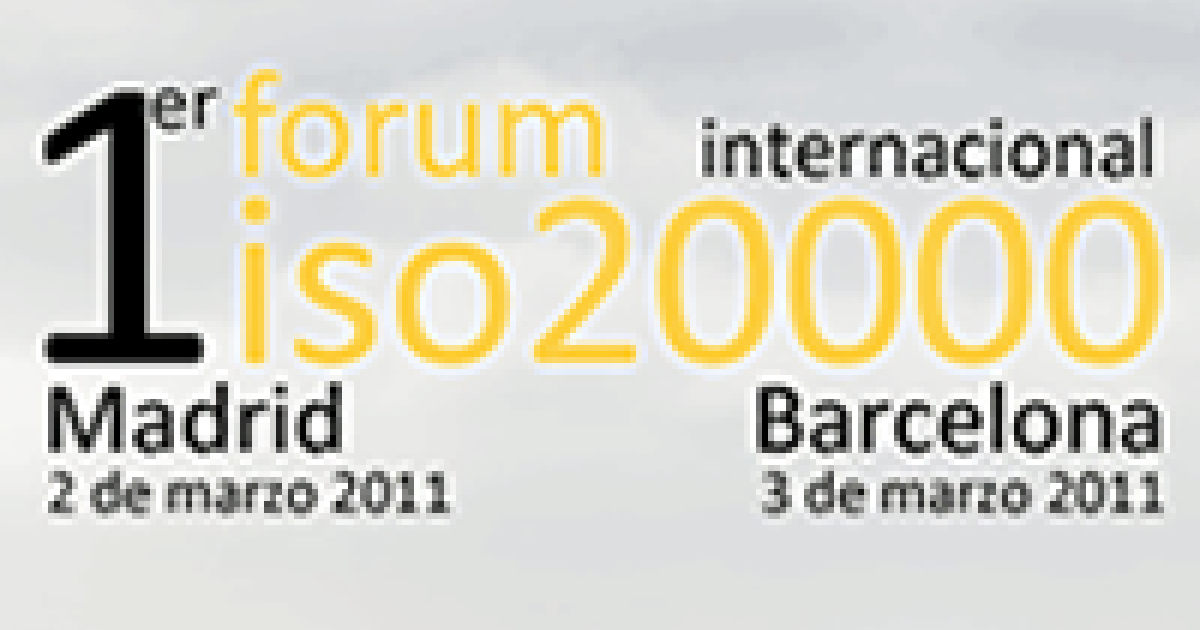 Dijous 3 de març tindrà lloc a Barcelona la primera edició del Fòrum Internacional ISO 20000, esdeveniment internacional de divulgació de la norma internacional ISO / IEC 20000 i de les bones pràctiques d'ITIL. Reunirà els principals experts d'aquesta norma i comptarà amb l'exposició de diversos casos pràctics. La trobada tindrà lloc a l'IDEC - Universitat Pompeu Fabra.