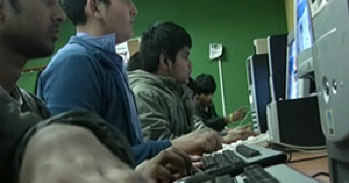 Joves fent servir els ordinadors a l'Òmnia TEB.