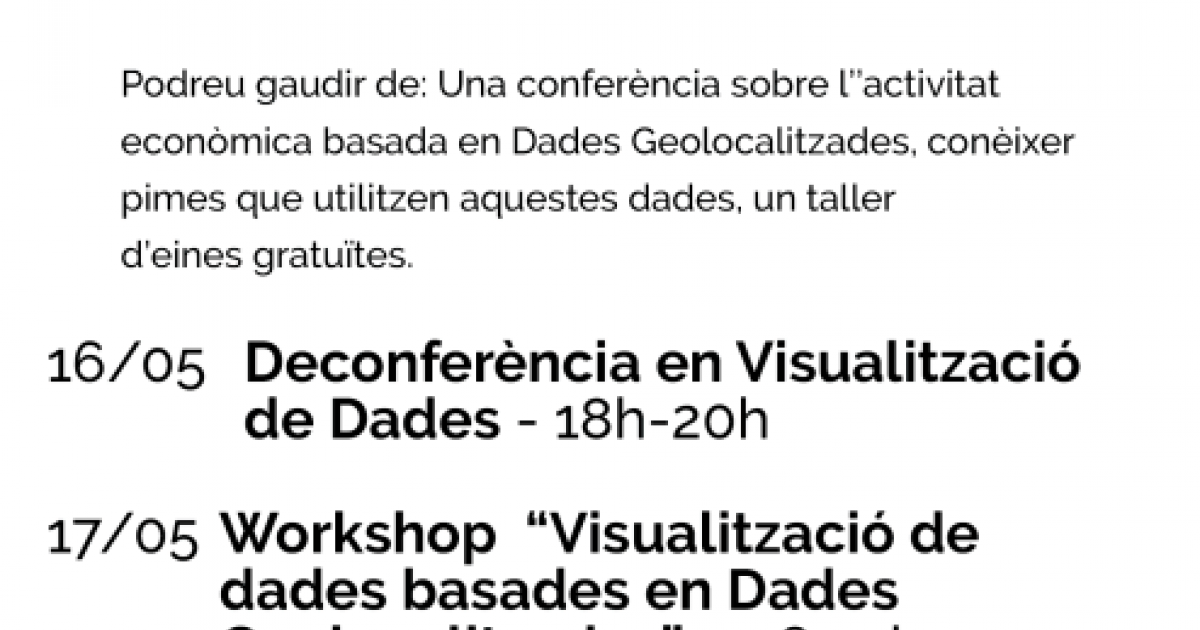 The days will end on Thursday, May 17, with a workshop on visualization of data based on geolocated data, which will be carried out by Elisa Vivas, journalist of Data in El Periódico. The workshop will begin at 6:30 p.m.