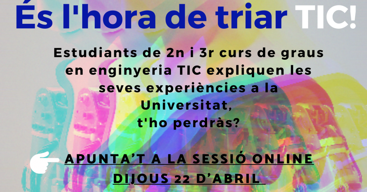 A la jornada, participaran els alumnes de diferents universitats de Catalunya que estan estudiant actualment un grau TIC i es donarà resposta a aquestes i altres preguntes: Com és la seva universitat? Per què van triar TIC? Què els va fer decidir? Quins avantatges troben en estudiar una carrera TIC? Quins obstacles han hagut de superar?.
