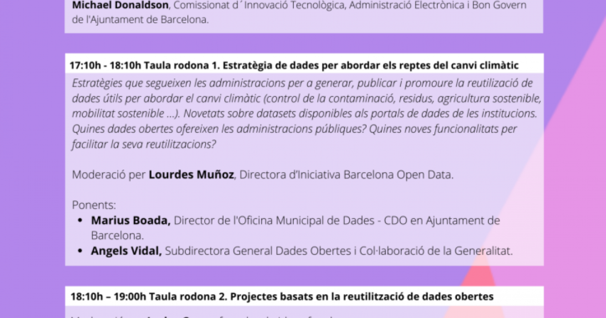 Iniciativa Barcelona Open Data organiza el Open Data Day 2023 el próximo 7 de marzo a las 17 h . Esta edición está dedicada a divulgar conocimiento y experiencias sobre Estrategias de datos para abordar los retos del cambio climático , facilitando el acceso a los datos abiertos públicos disponibles y las oportunidades de su reutilización. Por eso establecer un diálogo entre las administraciones y personas reutilizadoras para mejorar su uso efectivo. Se celebrará en Barcelona en Ca l'Alier. Puedes inscribirte aquí .