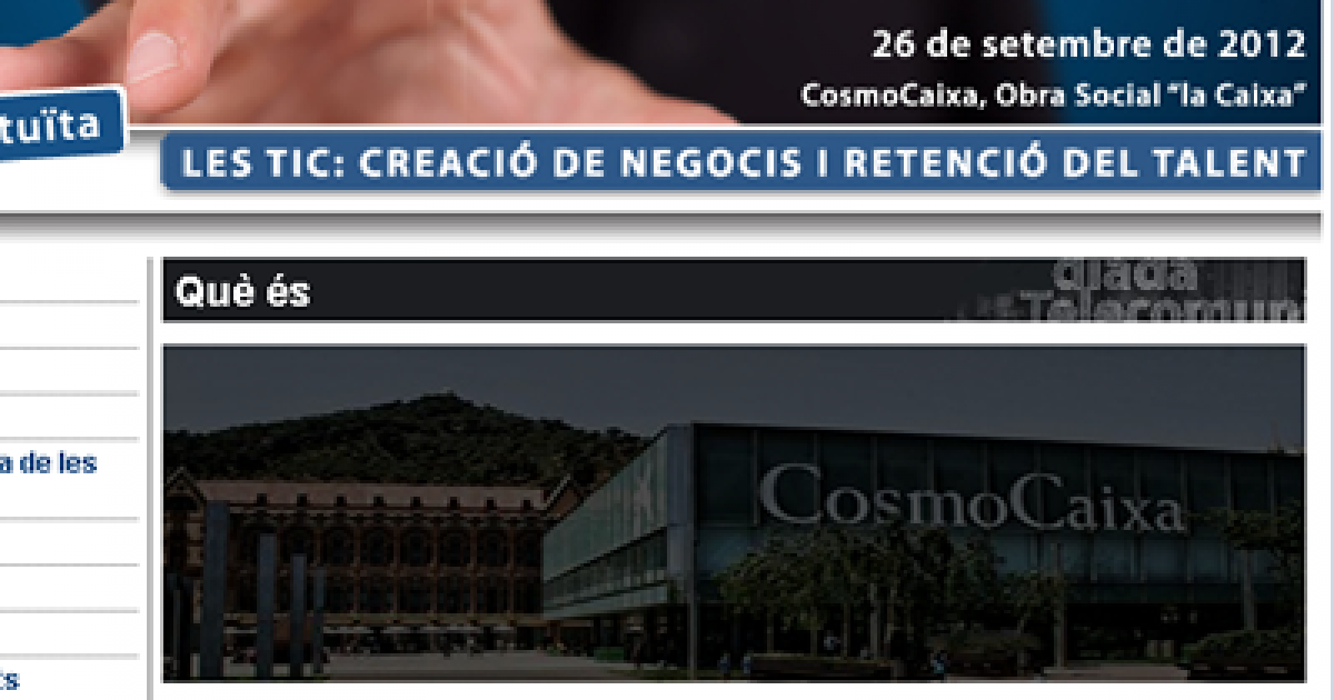 Sota el títol de “Les TIC: creació de negocis i retenció del talent”, el 26 de setembre de 2012 tindrà lloc l'onzena Diada de les Telecomunicacions a Catalunya. S'adreça als professionals del sector TIC i el període d'inscripció ja és obert.