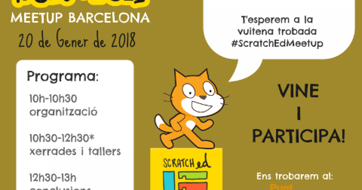 La 8a trobada de la comunitat Scratch a Barcelona tindrà lloc dissabte 20 de gener, al Punt Multimèdia de la Casa del Mig del Barri de Sants de Barcelona. Les persones interessades a participr-hi haurien de confirmar assistència.