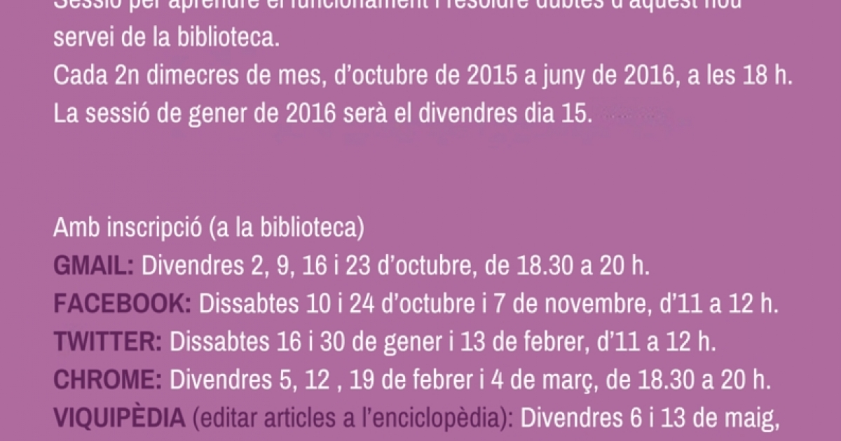 El curs es realitzarà en quatre sessions: 5, 12, 19 de febrer i 4 de març a les 18.30 hores.
