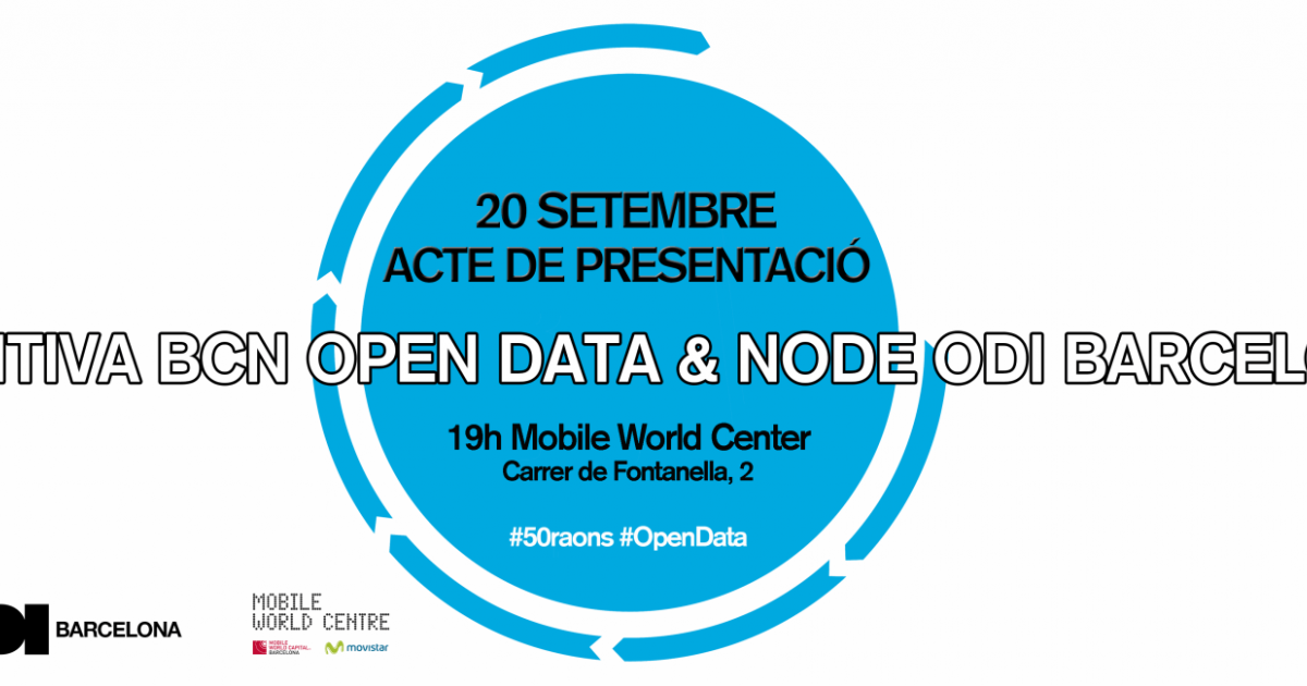 Aquest mateix dia es presentarà el Node Barcelona de l’Open Data Institute, una organització membre de l’ODI. L’Open Data Institute és un ens co-fundat per Sir Tim Berners-Lee i Sir Nigel Shadbolt per difondre capacitar i inspirar a treballar el món de les dades obertes. L’ODI genera aliances amb una sèrie de partners se centra a determinar com les dades obertes tenen impacte en les seves organitzacions i conjuntament construeixen una infraestructura de dades sòlides que ofereix innovació oberta a la xarxa.